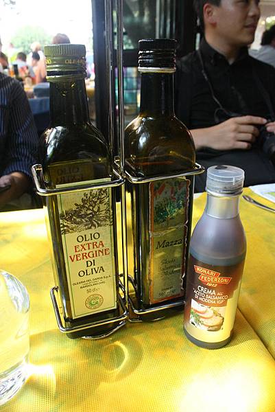 除了麵包以外桌上還有一罐橄欖油與巴沙米可醋